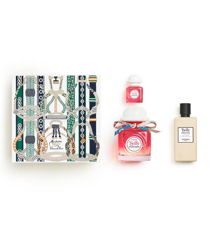 What's included: A full-sized bottle of Hermes' latest fragrance, the fruity and effervescent Tutti Twilly eau de parfum (85ml), a travel-friendly mini bottle (7.5ml), as well as a vial of the Twilly d'Hermes moisturising body lotion (80ml).