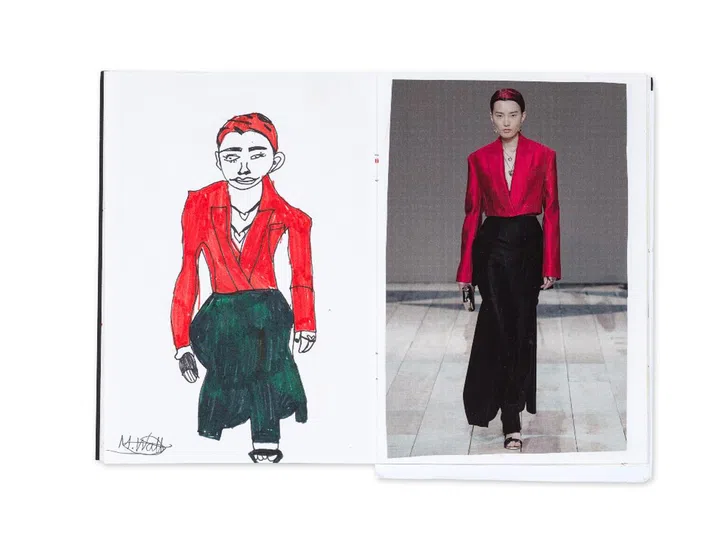 A participant's sketch of a look from Alexander McQueen's Fall/Winter 2020 collection.