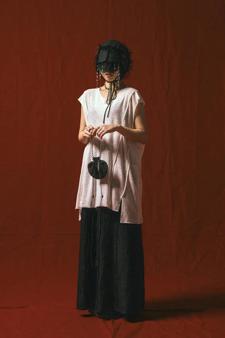 Launched in 2019, An Asylum has garnered a cult following for its shamanistic-like clothes and accessories that are entirely handmade and allude to traditional Japanese crafts such as boro – the art of patchwork – despite keeping a low profile. Its first collection, Sage, was revealed only at the 2021 edition of Singapore Art Week through an installation-like showcase at the Stamford Arts Centre. That same year, Neo and Ng established An Asylum’s in-house residency programme out of an altruistic desire to support others in the local creative community, having experienced firsthand the same challenges emerging designers and businesses face.