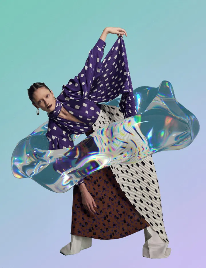 Photography & Video Zexi Qi Styling Anna Katsanis/Art Department Cinematography Jon Gourlay Post Production Snakk Studio Hair Kazu Katahira Makeup Christyna Kay/Art Department Model Amanda Googe/Women Management Casting Director Sheri Cui Set Design Tim Ferro/See Management Props Alex Rivera & Edwin Tobias Creative Production Anton Melekh 3D Glass House Alex Rivera Assistant Editor Patrick Chen Assistant Sound Design Tristan Hsu Music Samples Vaperror