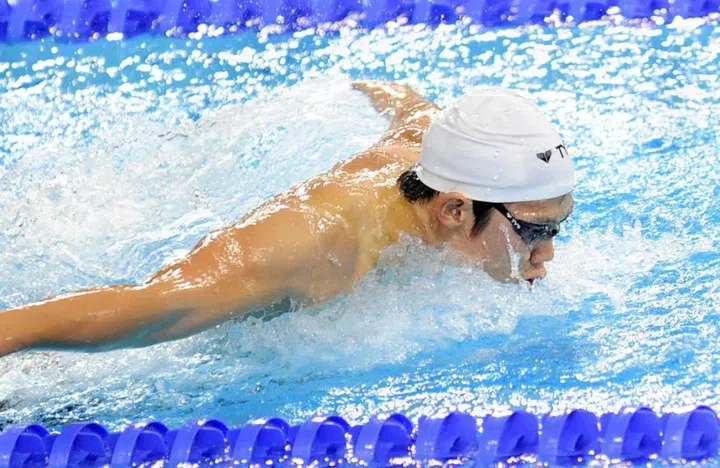 Former national swimmer Nicholas Tan swims the butterfly leg of the 4x100m medley relay final at the Asian Games in Guangzhou, on Nov 18, 2010.