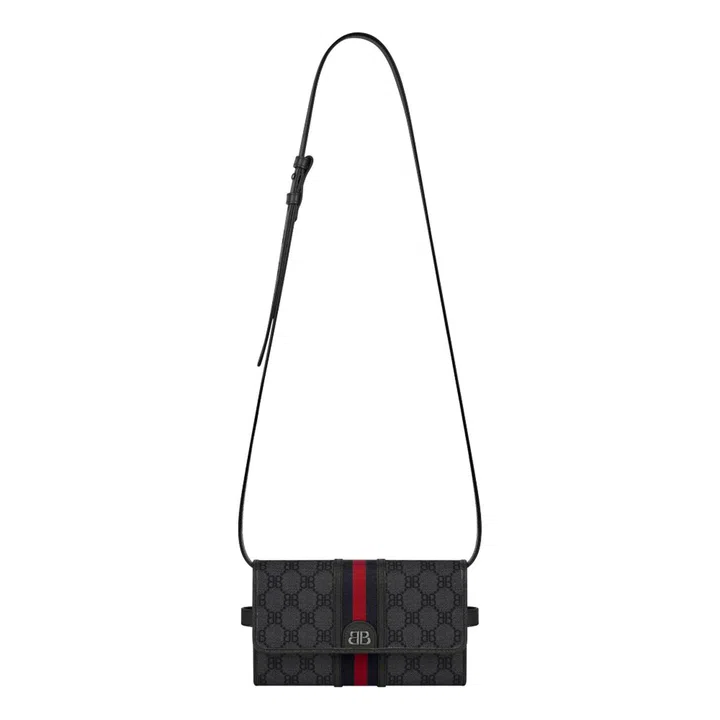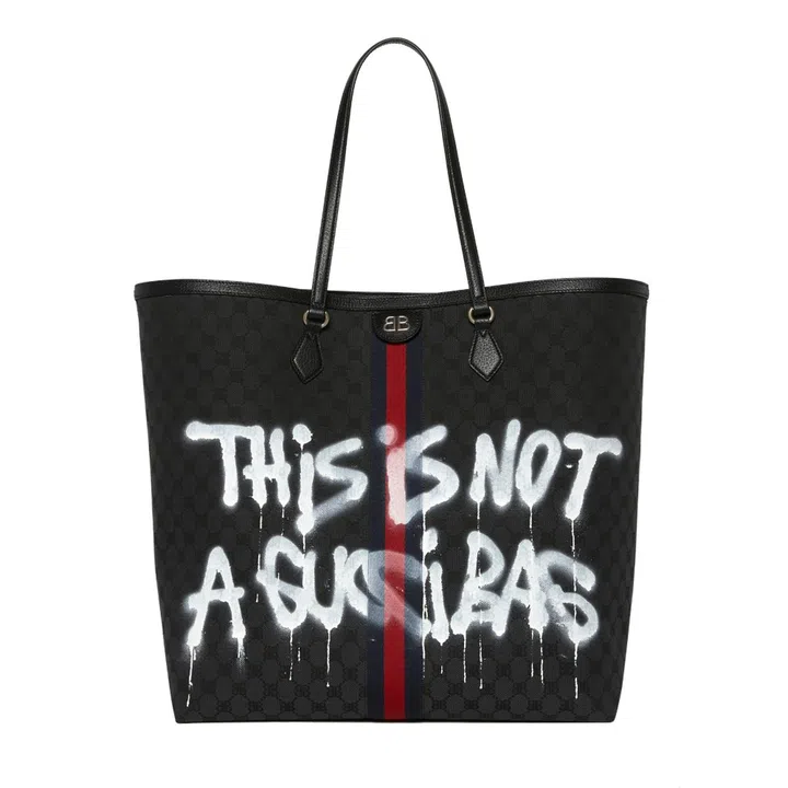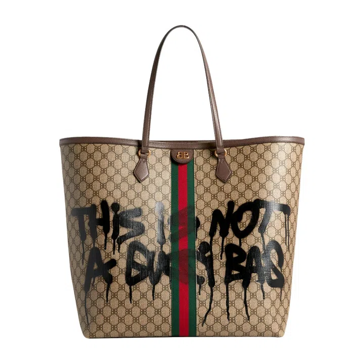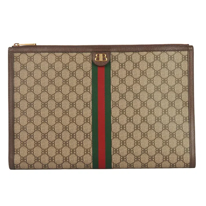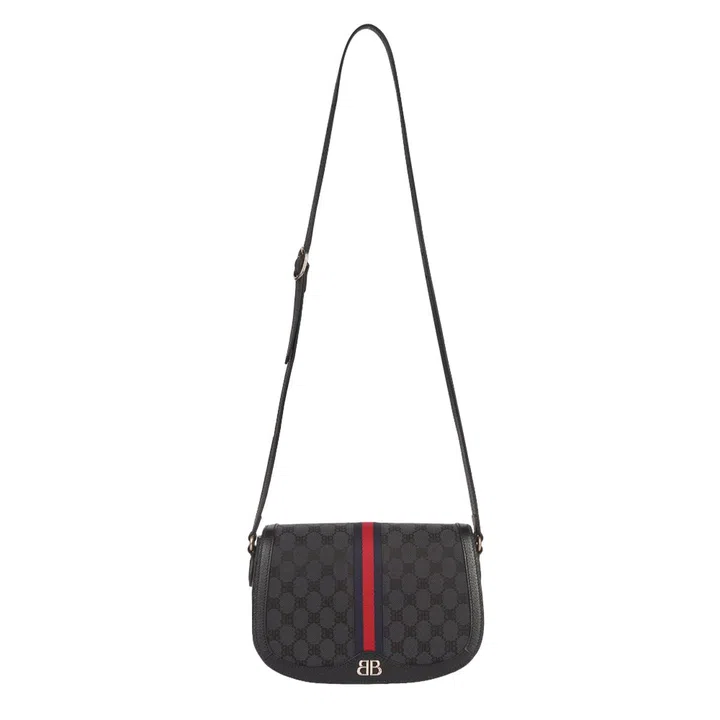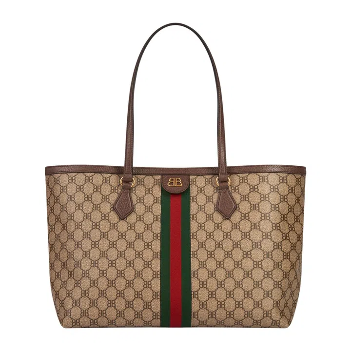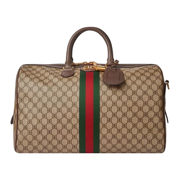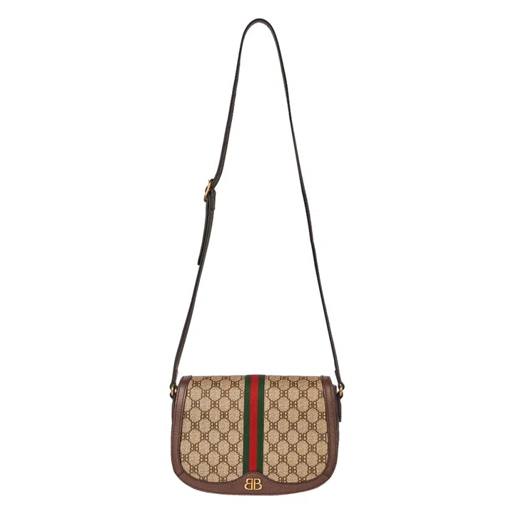 Gucci's double-G diamond monogram design is transformed to consist of Balenciaga's double-B logos.