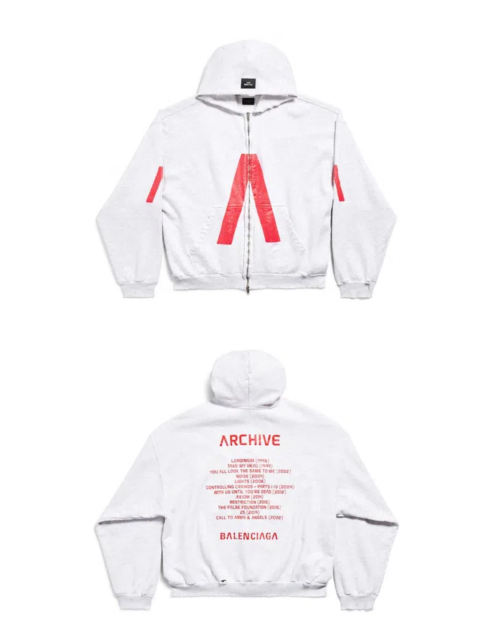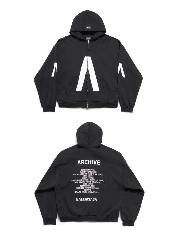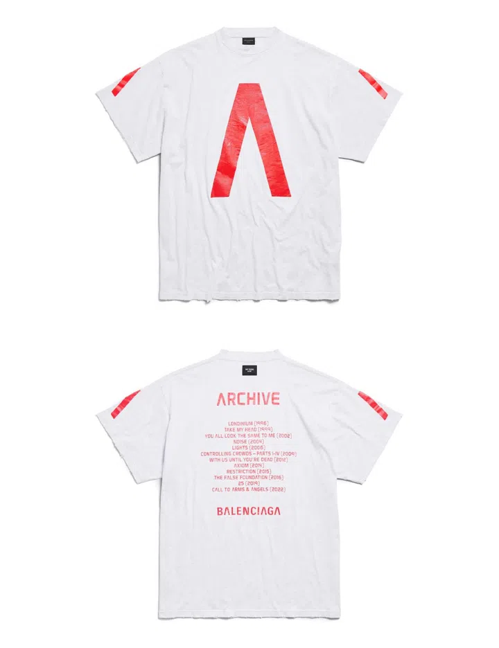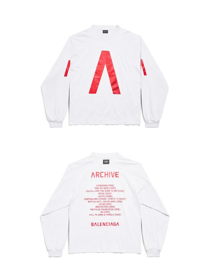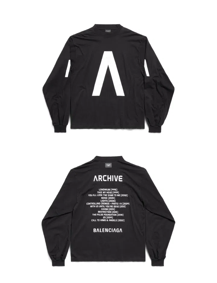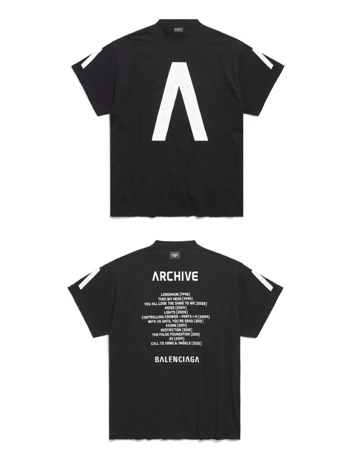 Archive's complete discography is stamped on the back of the Balenciaga Music merchandise.