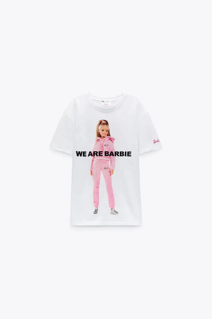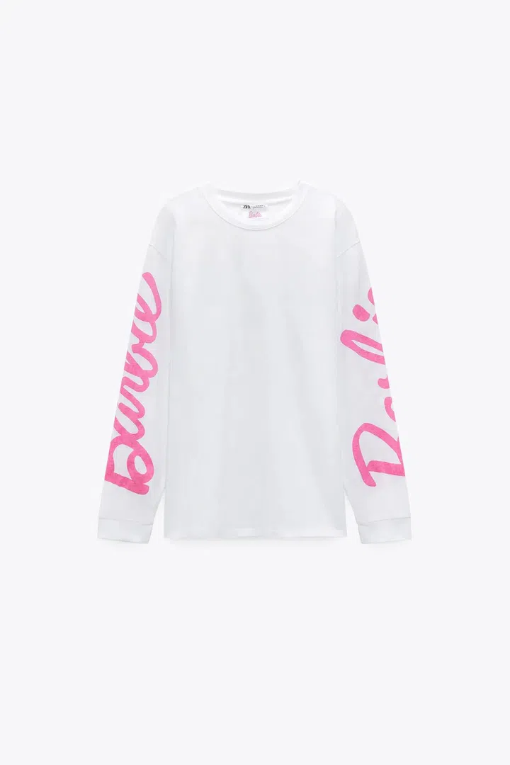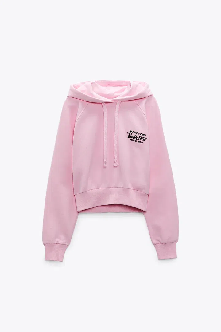 To mark the 62nd anniversary of Barbie this year, Zara and the doll's parent company Mattel have created a capsule collection of athleisure and '90s-inspired pieces that is full of pink, cropped tops and sweats that will be primed for the Y2K fashion fan base. And as a fitting tribute to the doll's original getup of a striped black and white maillot, Zara has created a one-piece swimsuit in white with the Barbie logo in black splashed across the chest.