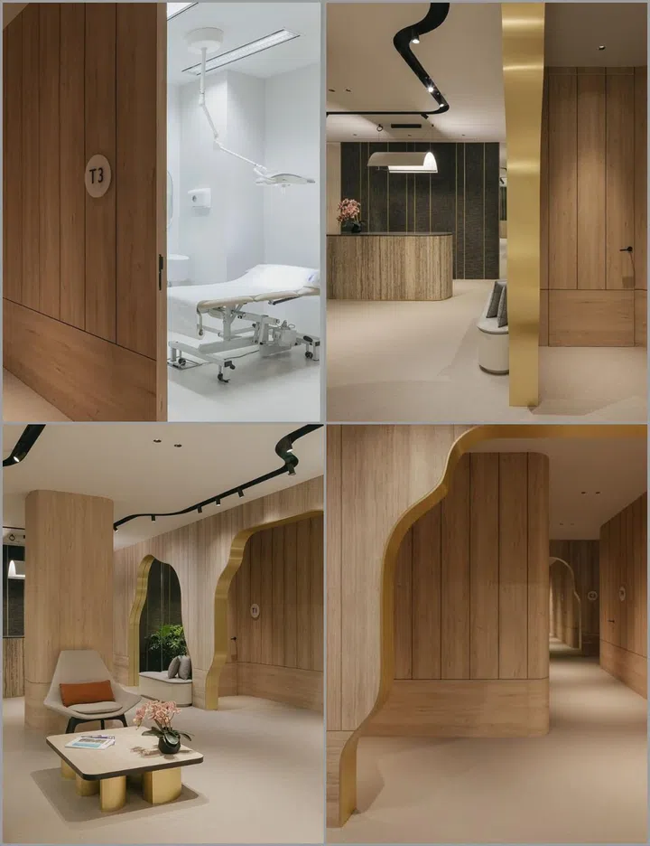 Instead, brass finish, marble tabletops, cocoon-like interior and modern furnishing combine to create a luxurious and inviting feel for all patients.