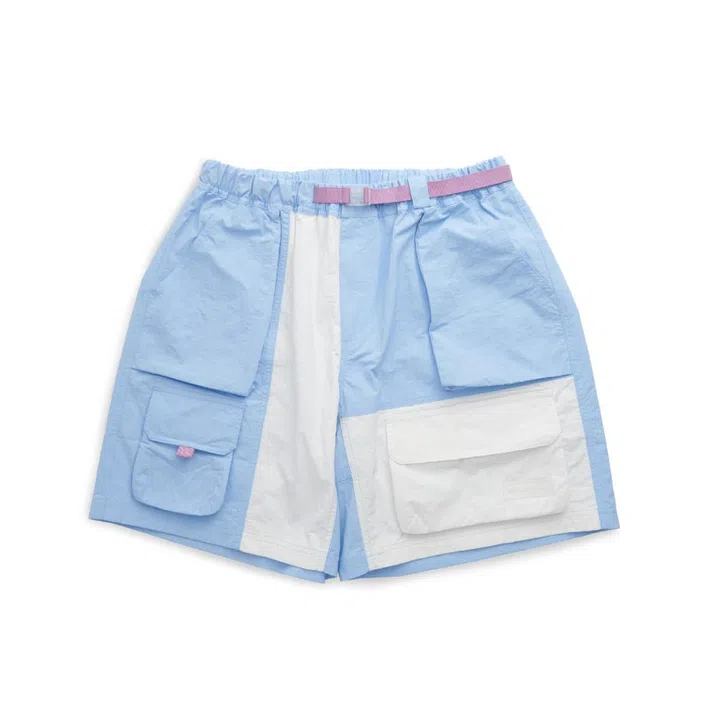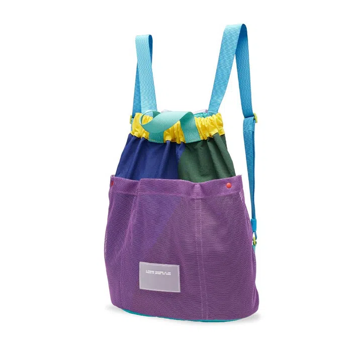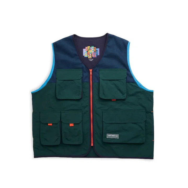 Each item has received an extensive treatment, featuring a patchwork of colour panels and various fabrics such as nylon and mesh. The commitment to this design approach is evident in the details, from waterproof zippers to stitching and custom hardware, all in contrasting hues. Fans of utilitarian style should also note how pieces like the gilet come with detachable pockets, and the Dumpling Bag features detachable D-rings. Now, that's an aesthetic we super love.