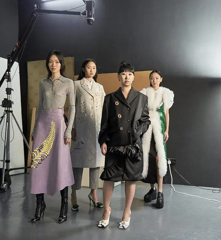 As founder and head booker of Basic Models Management, Bonita Ma (third from left and dressed in a Miu Miu skirt suit and 8 Moncler Richard Quinn pumps), has helped prove that home-grown models have what it takes to front international runways and campaigns. Among her brood that’s going places are (from left) Gucci and Rodarte runway regular Layla Ong in a Prada sweater and skirt and Miu Miu boots; Kaci Beh, who’s walked for the likes of Emporio Armani and Dolce & Gabbana, in a Miu Miu coat, shirt and pants, and 8 Moncler Richard Quinn pumps; and Nicole Liew, who made her Milan Fashion Week debut in February, in a Miu Miu gilet, shirt and skirt, and Prada Oxfords
