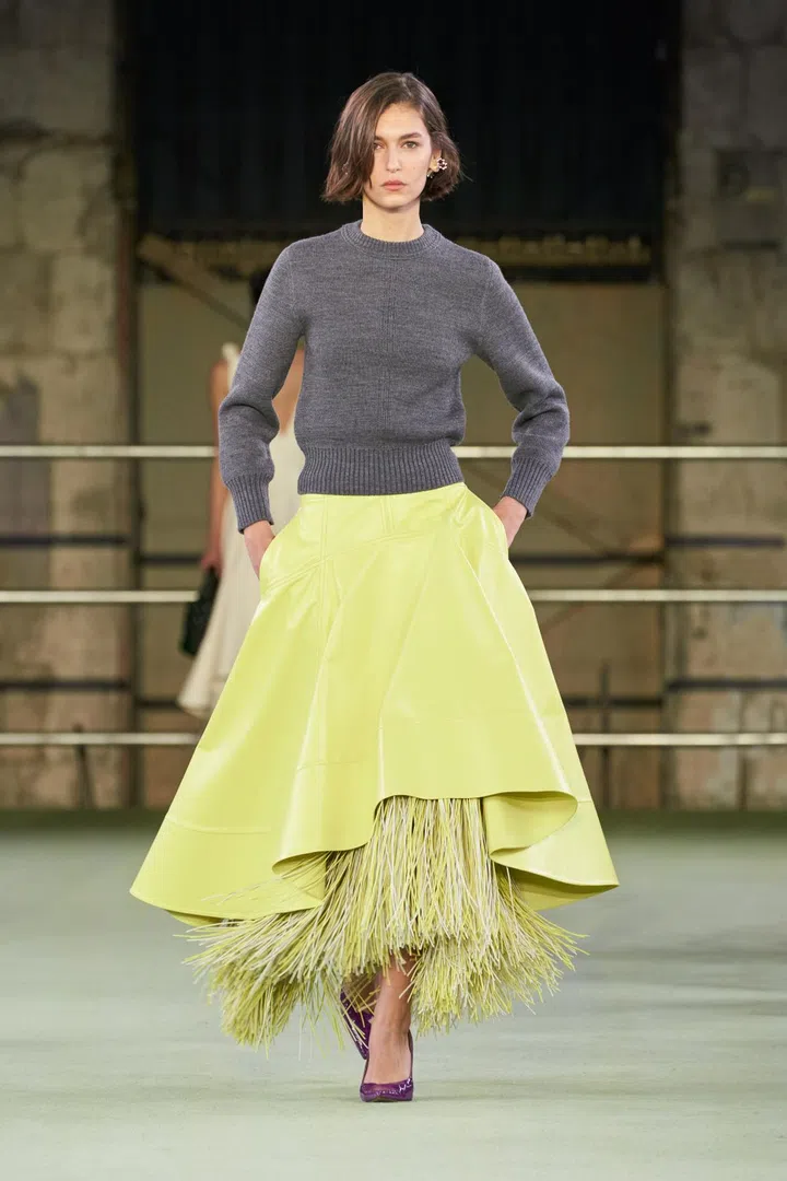 Perhaps the most memorable looks were the two that paired gently slouchy sweaters with big, extravagant leather skirts that came with a layer of fringe underneath. It spoke of movement (seriously, check it out in motion on video), craftsmanship and just the right dose of plain fun without being too serious. Can you just imagine the ASMR effect when walking with this fit on?