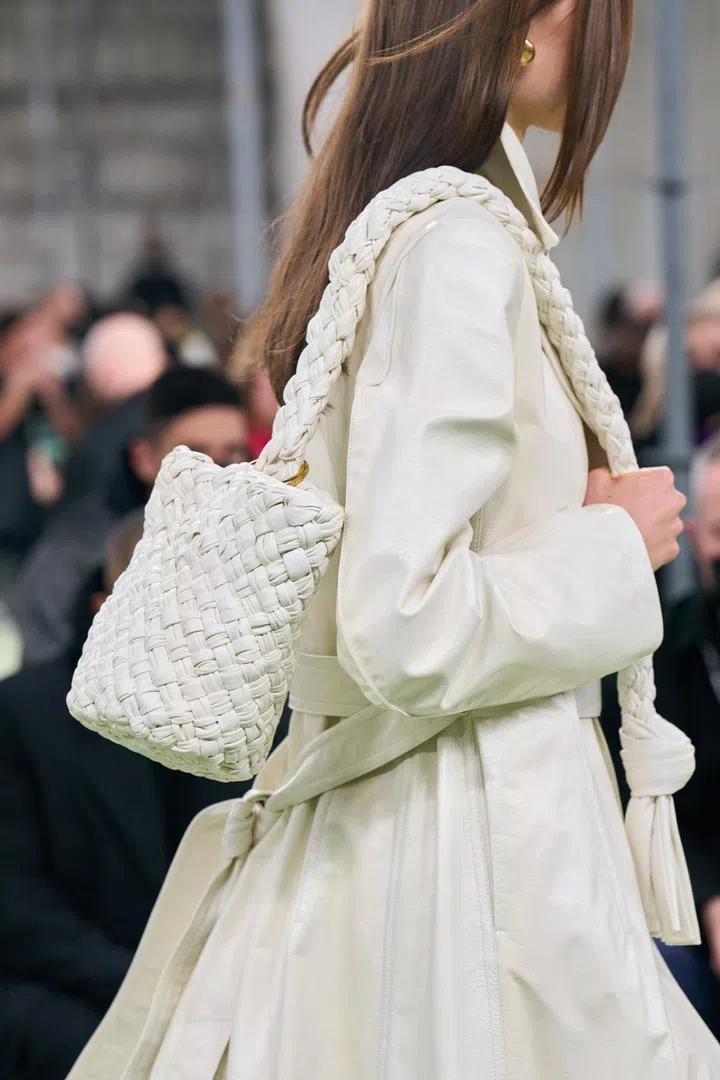 Going by his Business of Fashion interview, Blazy is apparently not one for technology and "newnesss" – he stated that one doesn't have to use technology to create something that's visually new. To that end, he's doubled down on the crafts Bottega Veneta excels at. A key bag for the house next season is the Kalimero (pictured) – a textured shoulder number that features the famous intrecciato technique. The bag (and many accessories in this collection) are reportedly all made without stitching; they're all hand-woven.