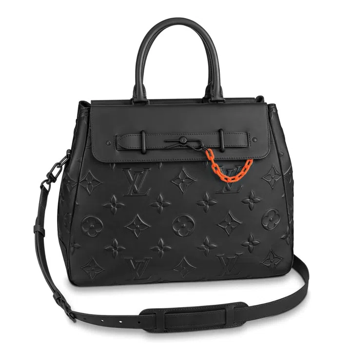 He's also seen with the Ambassadeur satchel from the LV Seal Giant series. The bag is a smaller iteration of an archival design and boasts an S lock detail which takes inspiration from the unbreakable trunk lock developed by Georges Vuitton in 1886.