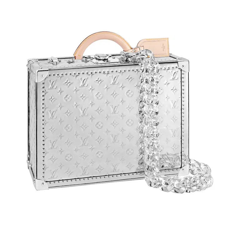 The case is a made-to-order design that's based on a heritage Cotteville travel case trunk. Abloh has given it some cool updates with its reflective leather construction and his signature transparent chain ornament which can be detached and worn around the wrist as a bracelet.