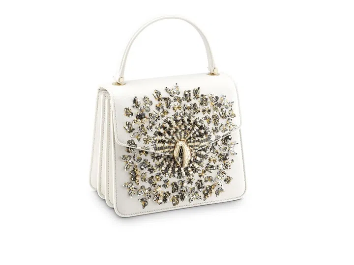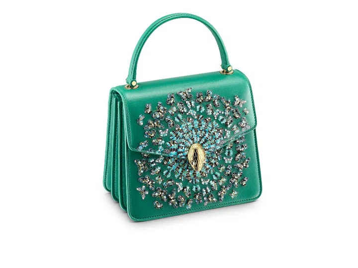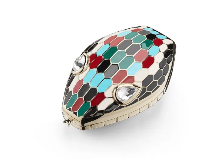 The key highlight of Katrantzou's collection is the introduction of a new style to the Serpenti bag lexicon. Called Serpenti Metamorphosis, the designs span a shoulder/crossbody style called the Serpenti Metamorphosis Handle, a prim top-handle bag simply dubbed the Serpenti Metamorphosis, and an evening number called the Serpenti Metamorphosis Minaudiere.