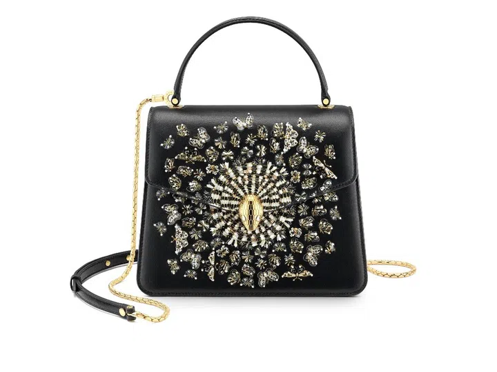 The bag also sports a rather nifty feature that harks back to its theme of metamorphosis: a sculptural snake-shaped handle (inspired by the bracelet of the Serpenti Harlequin watch from the '60s) can be swapped with a gold chain strap so that the bag can be converted into a crossbody design.