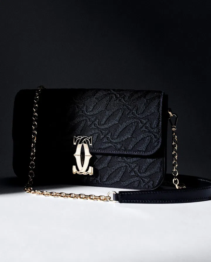 The latest iterations of the C de Cartier include a chain bag featuring a fabric exterior embroidered all over with the maison’s monogram on the bias – the first time Cartier has come up with a monogrammed bag.