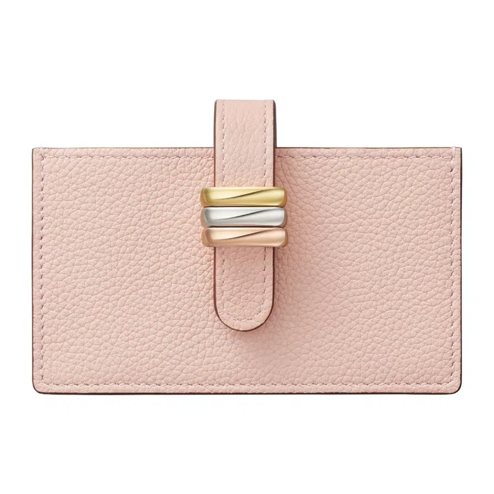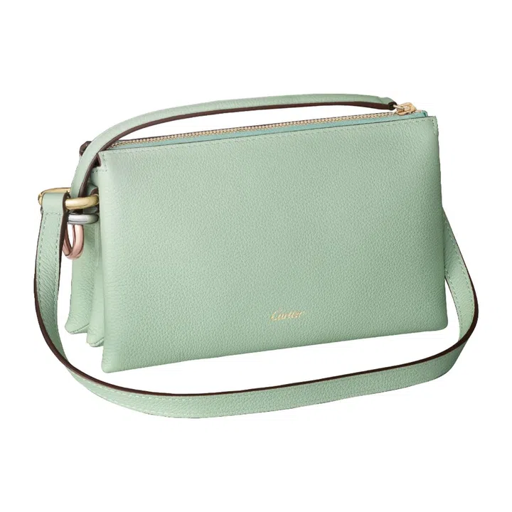 Crafted from grained calfskin, these compact treasures come in timeless shades of classic black and Cartier red, as well as refreshing mint green and delicate pastel pink. The Trinity motif shines through with three metal rings featuring gold, palladium, and rose gold finishes. In an era where bags often boast excessive key chains, charms, and plush additions, this understated elegance sets you apart effortlessly.
