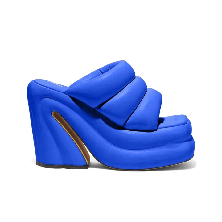 This pair of platform sandals features puffy strips of supple lambskin leather – but we can't help but be tickled by how they remind us of strips of fondant or marshmallows. Available only through pre-orders.