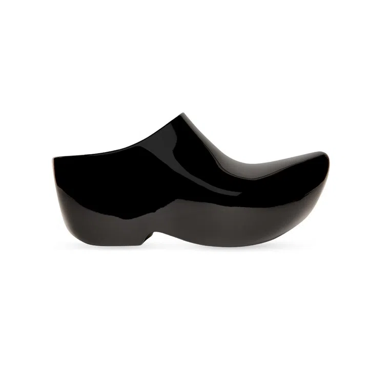 Demna takes the traditional wooden clog and gives it a monolithic look with this pair that comes in a shiny effect rubber. The style is also available in a matte leather finish and a crstyal-festooned version.