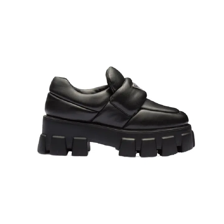 Prada loafers have been getting a bit of love among the fashion set lately – and this version with its chunky creeper soles and padded leather uppers literally takes the style to the next level.