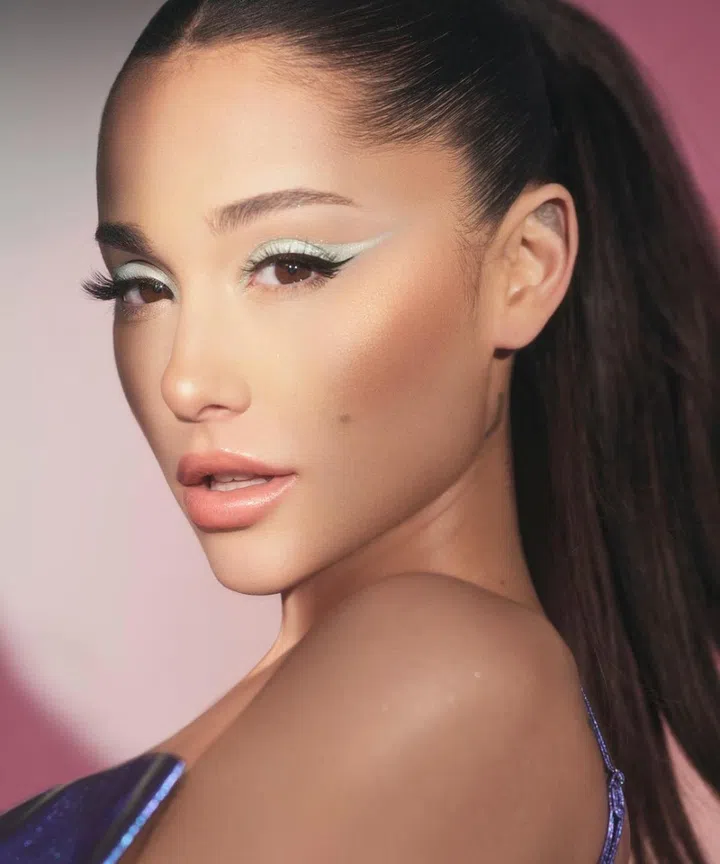 Another low-effort yet impactful makeup look comes from none other than Ariana Grande. This is a cut crease created with a single bright colour that pops against the colour of her skin and eyes, which is then extended to give further drama akin to a graphic liner effect. Using a detail eyeshadow brush, sketch out the shade of the cut crease before filling it in with the chosen shade.