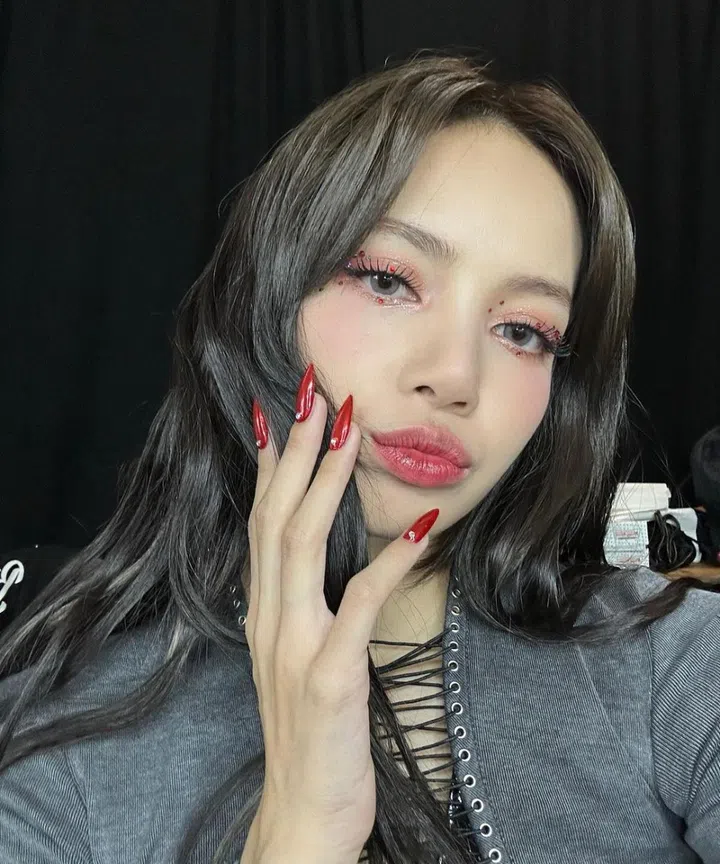If you have more time to play with your concert makeup, take a leaf from Lisa’s book and adorn your face with some well-placed glitter. After doing a simple sweep of colour over the eyelids, use tweezers and your creativity to curate your own dramatic sequinned look.