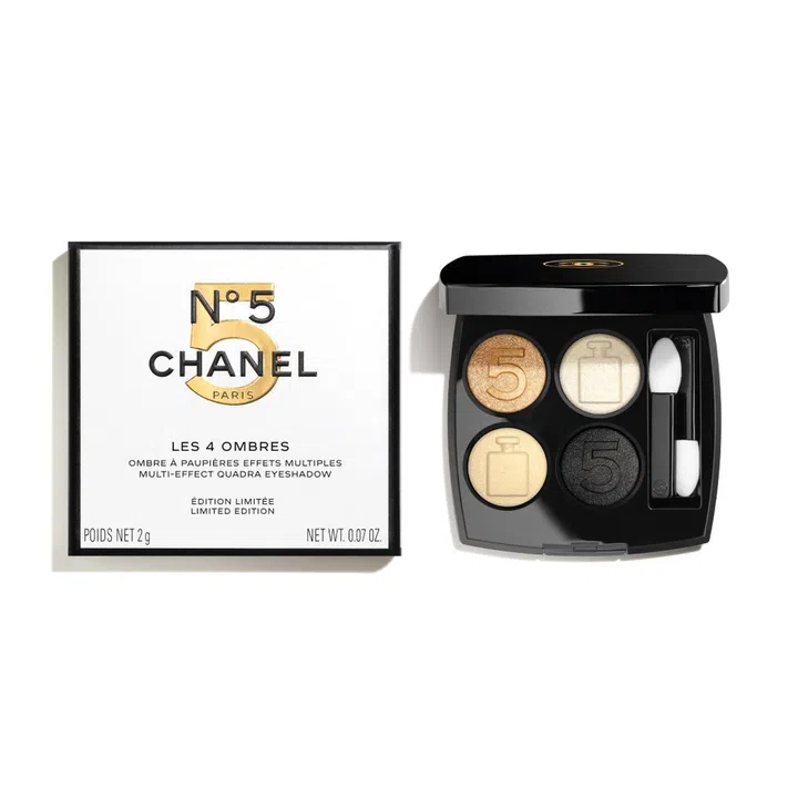 The palette comes equipped with four creamy eyeshadow shades that have taken inspiration from the golden and silver hues of the limited edition fragrances. The N°5 iconography stamped on each shade makes this palette a true collector’s item.
