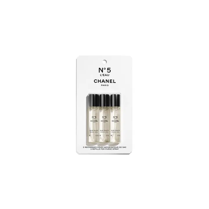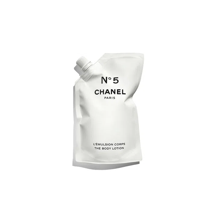 The form of everyday objects – refill sachets and burette bottles, for example – are nevertheless recognisable thanks to the black and white design iconography of Chanel Nº5.