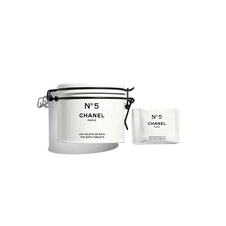 Products like body oils, bath tablets and shower gels all come packaged in a witty everyday manner. Think tubes of paint, a tin for tea and even burette dispensers. It’s smart too: treating Nº5, a creation often whispered in mythic tones, like this gives it a fresh approachability.