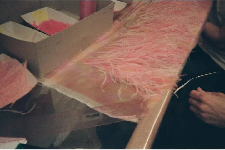 At Lemarie, one of the 27 metiers d'art – or specialty ateliers – that Chanel owns, feathers are cleaned, tinted, refined, trimmed, curled then applied to garments all by hand to give garments a glamorous and romantic flourish.