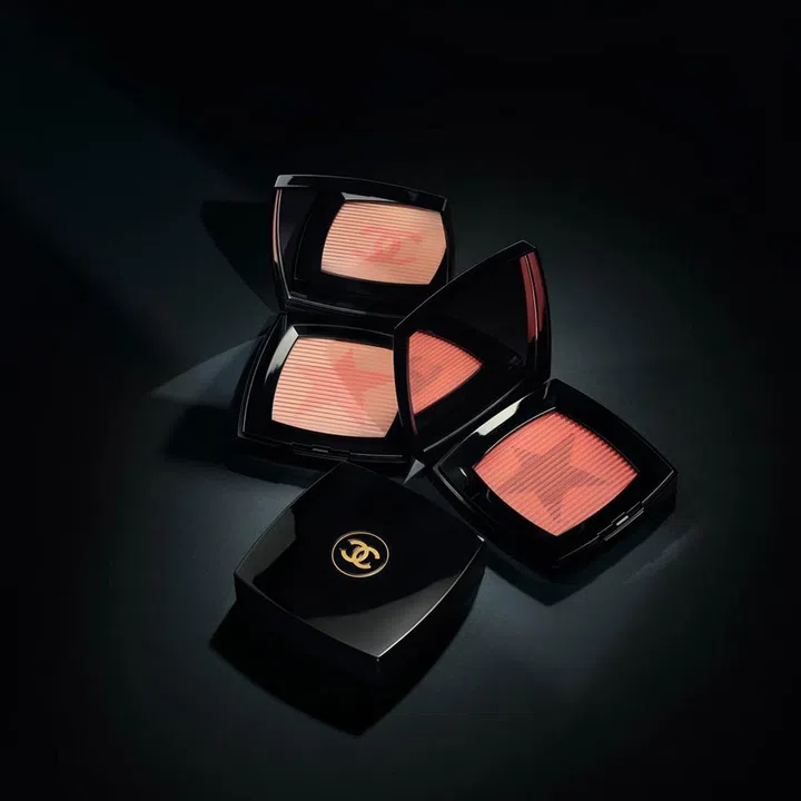 The limited edition duo of Blush Comete, the powders of which are designed and pressed with a lenticular technique to create an optical illusion that reveals the crossed-C logo in the mirror.