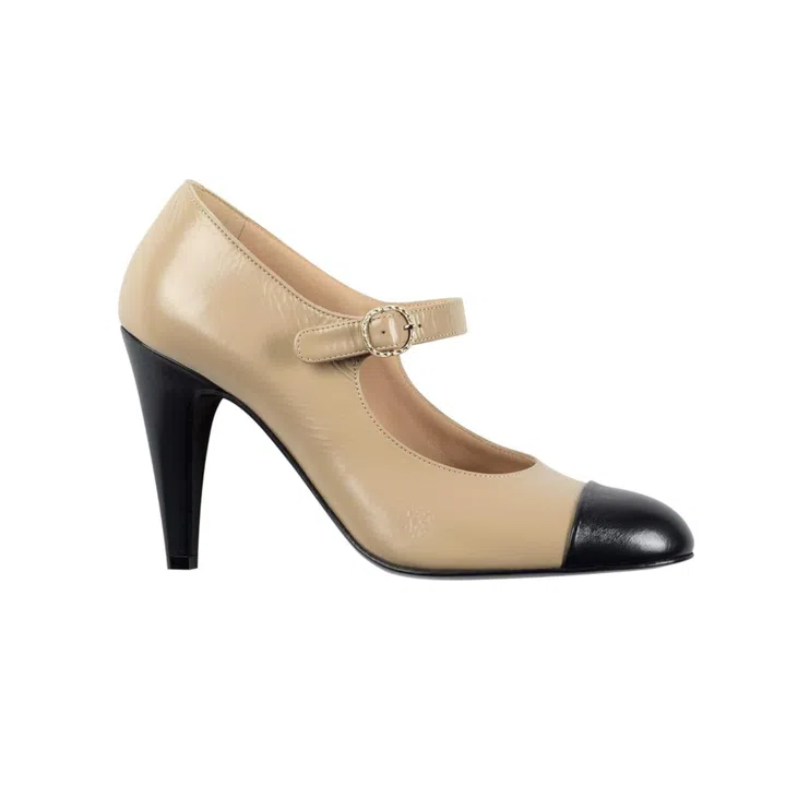 Established in 1894 by Raymond Massaro, it was his creation of the now iconic two-toned slingbacks for Gabrielle Chanel in 1957 that forged the relationship between the two Maisons (Massaro was acquired by Chanel in 2002). The two-toned sandals were reinterpreted into heels (pictured) this season, and are made with a shiny goatskin, enhanced with details like the 'CC' signature. A tapered heel offers a flattering elongated look, while the black satin toe allows the foot to appear smaller.