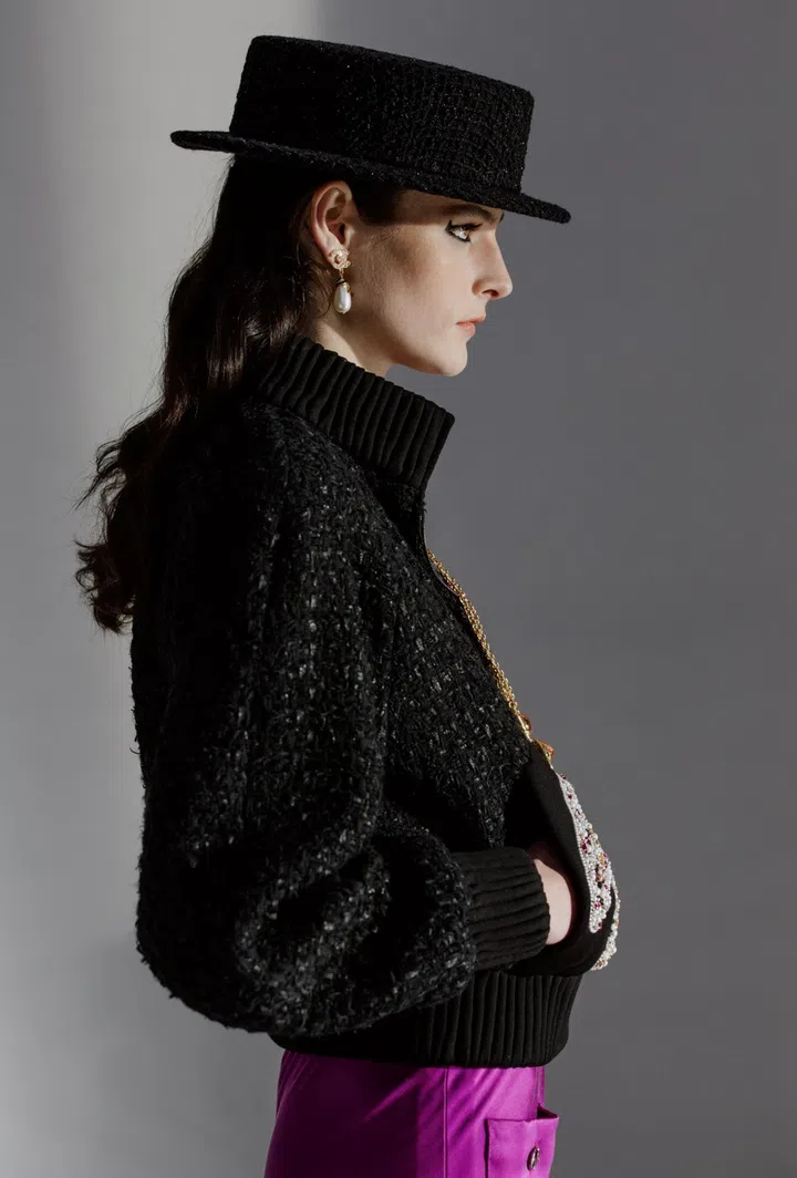 There is also an urban street quality to this collection which Viard described as "metropolitan yet sophisticated". Tweed jackets received a youthful injection of graffiti-style embroidery in multi-coloured beads by the craftsmen from Lesage. Meanwhile, jackets with sweatshirt sleeves and coats that were worn opened by the models in the show give the collection a louche quality.