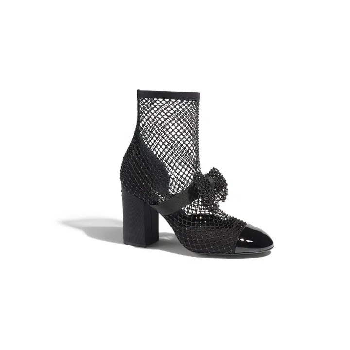 Seen in just about every look in this collection, these ankle-high boots give the illusion of a fishnet that's been worn over a pair of heels.
