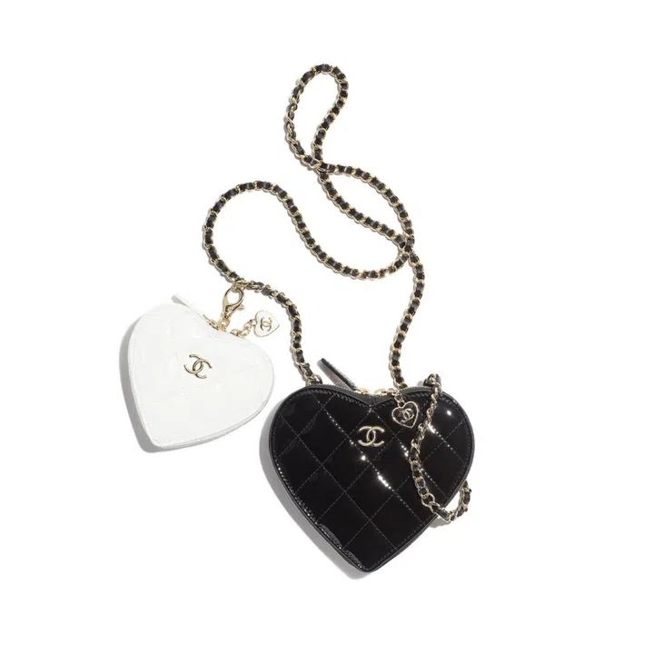 Why have one when you can have two? The black heart-shaped clutch comes with a lovely pairing of a smaller white compartment – both having a heart-shaped zipper to really drive the heart theme home.