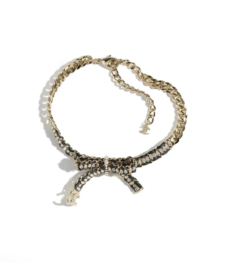 It seems to be a trend these days to use ribbons as a necktie or necklace, and Chanel sure has noticed that. Reminiscent of a choker, this leather necklace will make for a great addition to just about any outfit.