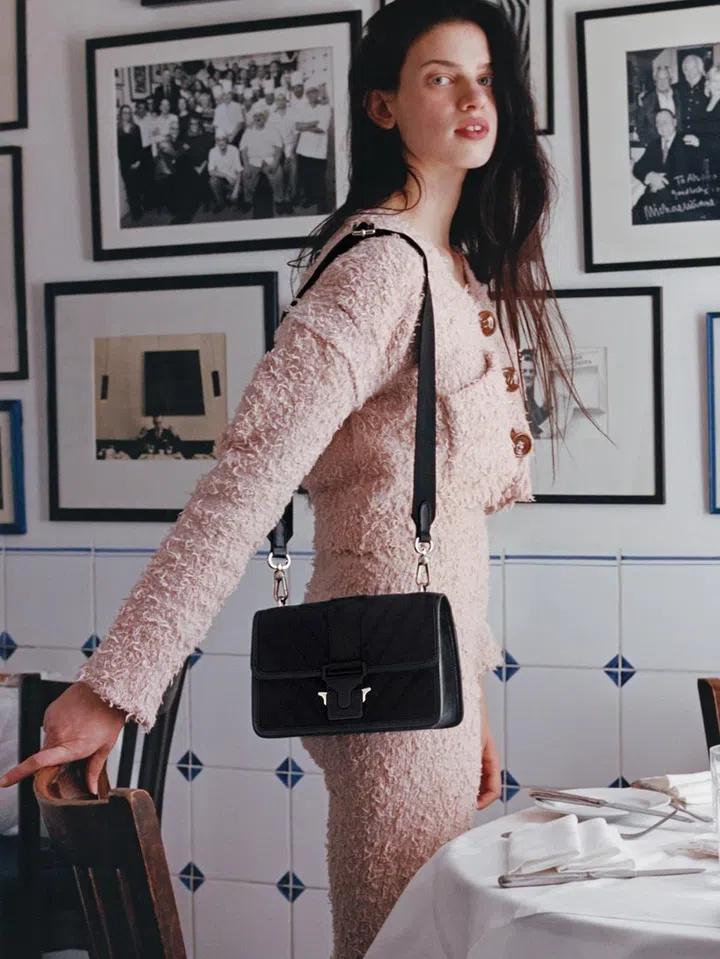 The latter, which is available in stores and on the microsite, features some of the brand's most popular bags and footwear reimagined in recycled nylon and modern colourways of black or pastel pink. The designs span minimalist flat sandals, classic chunky boots, padded bags, boxy shoulder bags and padded wallets.