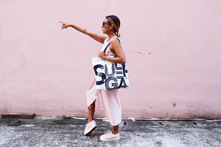 Seah-Ong paired a dress from In Good Company with the Female X Superga tote from our October 2016 issue.