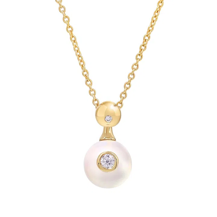 Nemara Pearl Pendant 18K yellow gold necklace with pearl and diamonds, $1,580, State Property (#03-09B)
