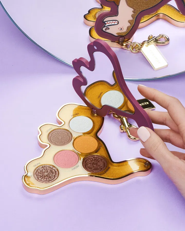House mascots like Sharky, Rexy and Uni are reimagined for the packaging of the Coach X Sephora eyeshadow and face palettes.