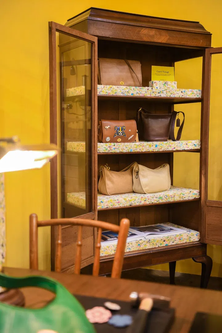 The concept store is more than just another retail outpost for Coach, you also get an immersive look at the brand's rich history. Peppered throughout the space are vignettes of the brand's archives – cue a vintage television showcases films of Coach’s leather restoration specialist Debi the Restorer and displays of vintage bags (pictured) designed by the legendary American designer Bonnie Cashin like the Ergo and the Cashin models.