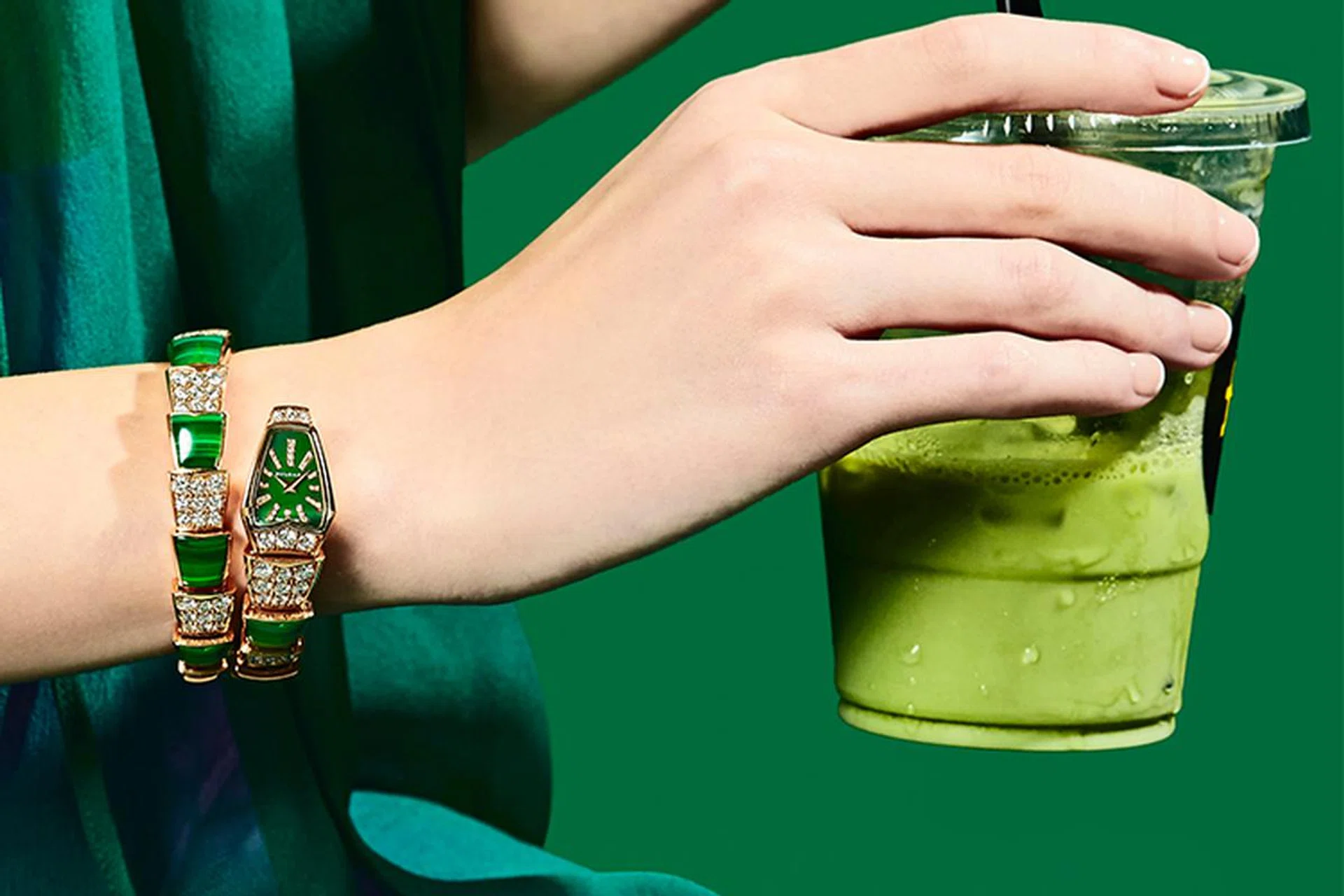 The forever glamorous Serpenti timepiece from Bulgari boasts an opulent style with this new colour combination of green malachite stone and warm pink gold.