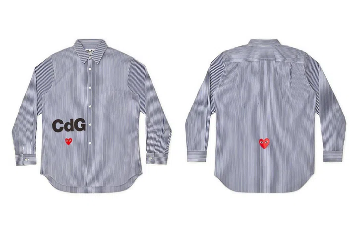 This limited-edition nine-piece collection is also the first time Play Comme des Garcons has invited partners to collaborate on ready-to-wear. To wit, Converse and Nike each have a white T-shirt, grey hoodie, and a blue and white striped button-down shirt.