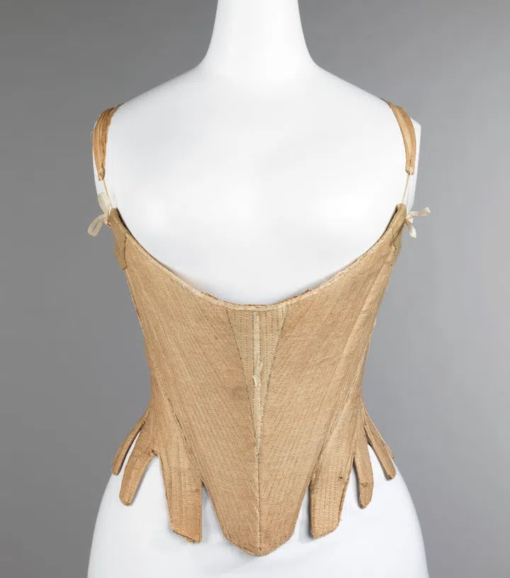 A corset from the mid-1700s constructed from linen, leather and whalebone. Brooklyn Museum Costume Collection at The Metropolitan Museum of Art, Gift of the Brooklyn Museum, 2009; Gift of the Jason and Peggy Westerfield Collection, 1969. The Metropolitan Museum of Art
