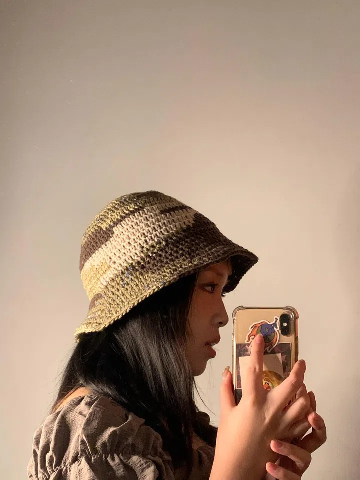 Lydia: “Yes, this hobby is contagious! We began exchanging ideas about crochet designs after starting our small handmade business. From those exciting craft conversations, our unique half-fabric half-crochet hat was born.”