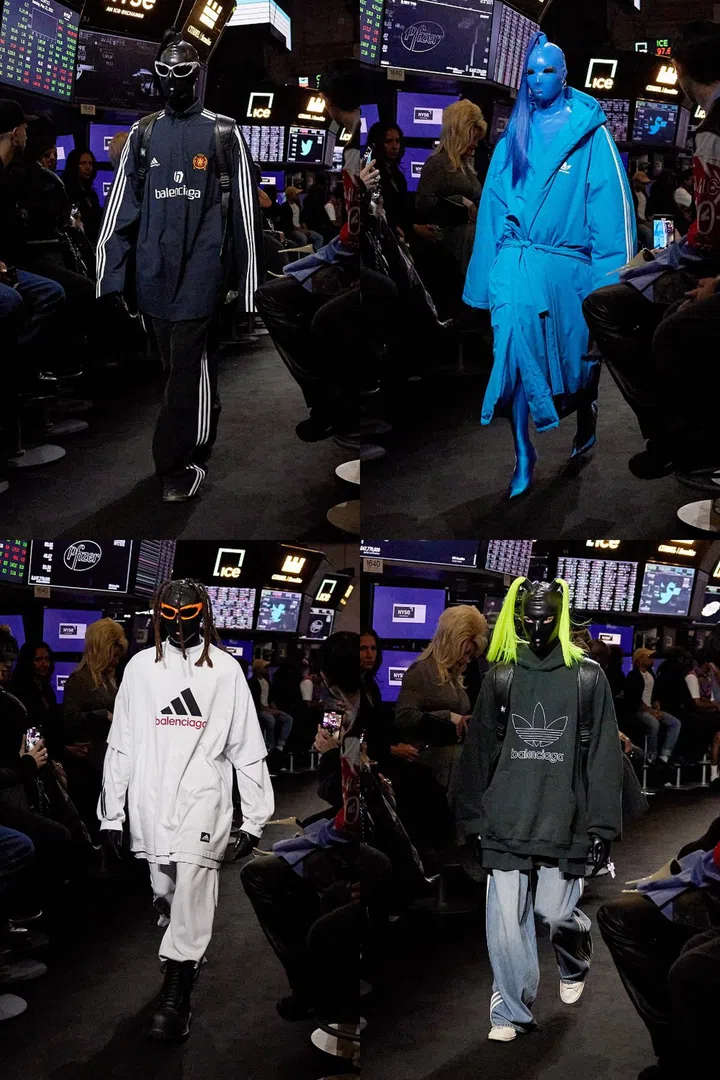 Take, for instance, Demna's iconic Triple S sneakers which feature the activewear giant's famous three stripes. Or clock the Stan Smith sneakers that were designed to look intentionally worn out. Meanwhile, garments like T-shirts, pullovers and sweatpants could belong to either brand, given Balenciaga’s distinct XXL proportions.