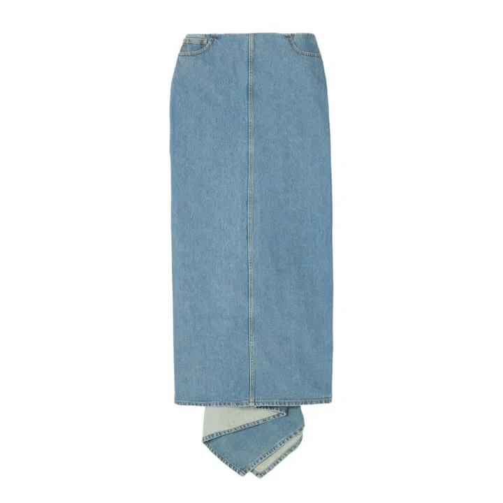 A denim maxi skirt with a mermaid silhouette as seen at brands like Burberry and instantly gives the garment a dressed-up look.