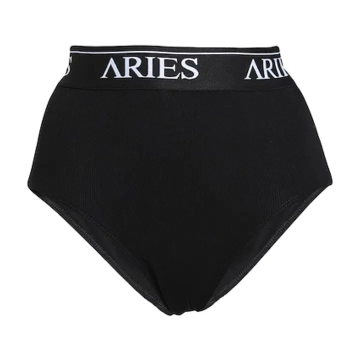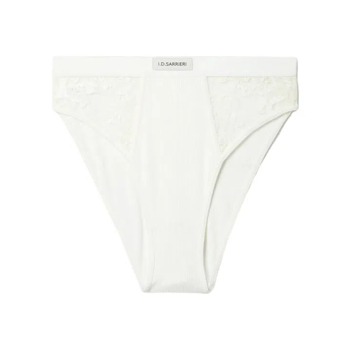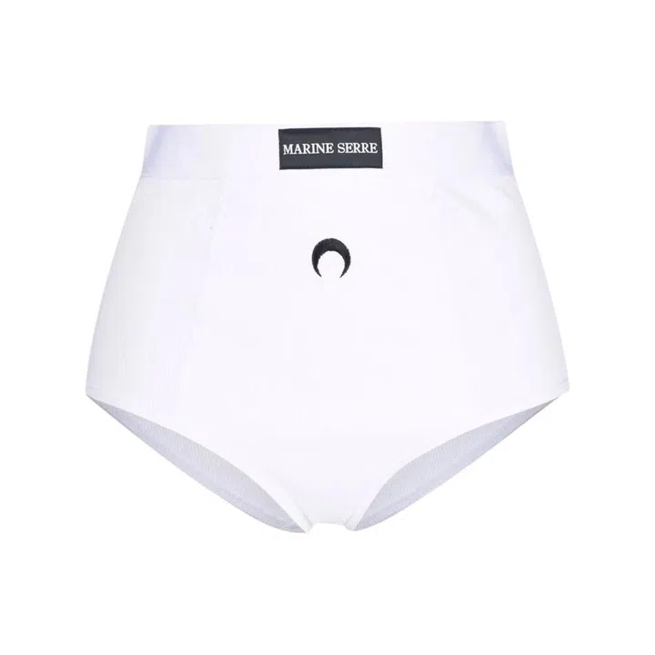 And the branded briefs are in a prime spot for this purpose. Miu Miu started a look by teaming up its low-slung bottoms and skirts for Spring/Summer 2022 with cotton jersey briefs imprinted with a Miu Miu-imprinted black tab on the waistband.