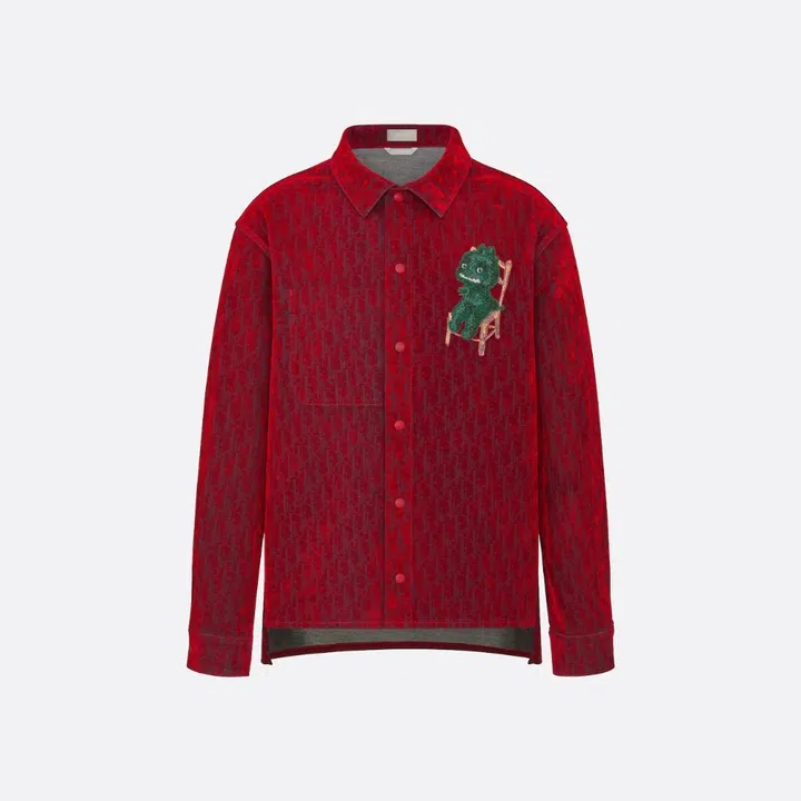 We certainly aren't tired of seeing red this season, especially with this red denim overshirt. Take a closer look, and you'll find a subtle all-over Dior Oblique jacquard stamped on the short, adding a touch of eccentric and playful modernity with the capsule collection's signature monster motif.