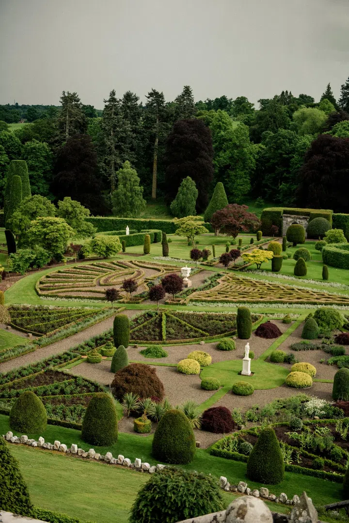 The Dior Cruise 2025 show took place at Drummond Castle, renowned for its formal terraced gardens, in Scotland.