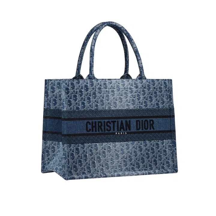 The Dior Book Tote has become a staple of the Dior aesthetic, with its shape perfectly designed to fit all the essentials needed for the day. This variation is crafted in blue Denim Dior Oblique jacquard, offering a modern twist with a stonewashed effect.
