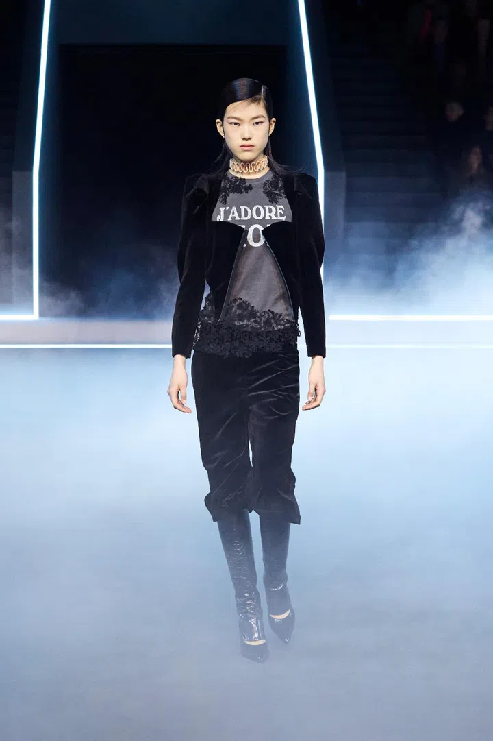 Chiuri has always made it a point to be respectful of her predecessors at Dior - a trademark since her very first collection for the maison. In this collection, there were various references to the works of former Dior heads, such as John Galliano's beloved J'adore Dior slogan T-shirts (which seems to be grungily distressed this time, compared to its Y2K days).